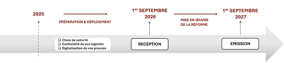 A partir du 1er septembre 2027, elles devront émettre au format électronique (e-invoicing et/ou e-reporting).